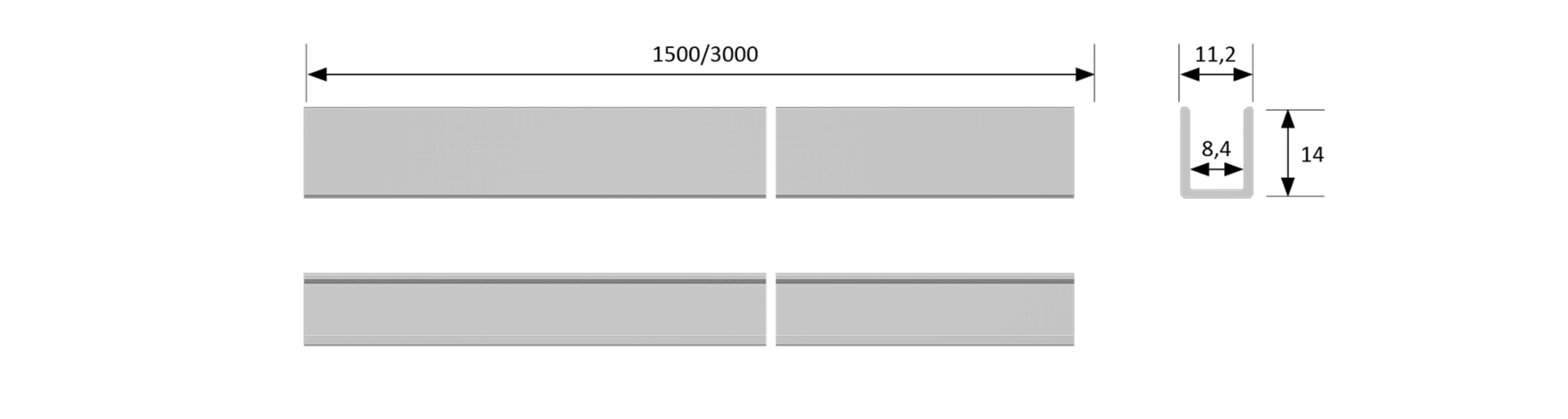 Halemeier Einbauprofil GlasLine; Montage: zum Aufstecken; Ausführung: U-Form,für 8mm Glasplatte,individuell kürzbar; Material Profil: Aluminium; Einsatzbereich: Möbelkanten; Breite: 14 mm; Länge: 1.50