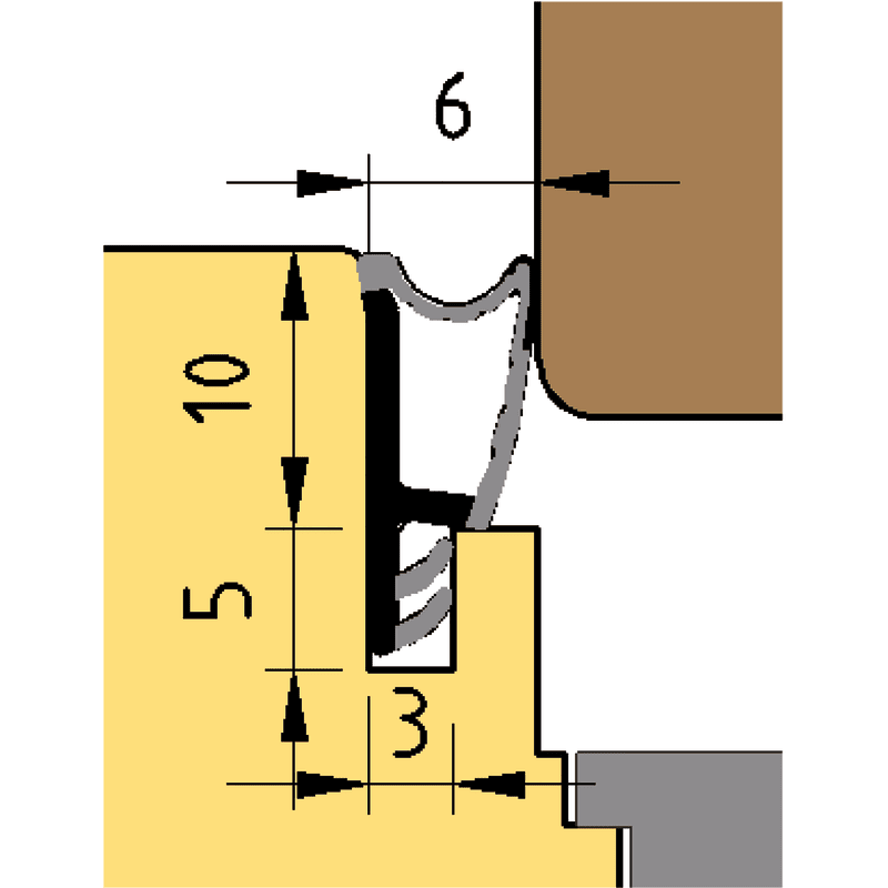 TRELLEBORG Überschlagdichtung L5110; Werkstoff: TSP-Last; Befestigungsart: zum Einnuten; Einsatzbereich: Fenster; Basis: Überschlagdichtung; Farbe: weiß; Falzhöhe: 10 mm; Nutbreite: 3 mm; Anschlagluft