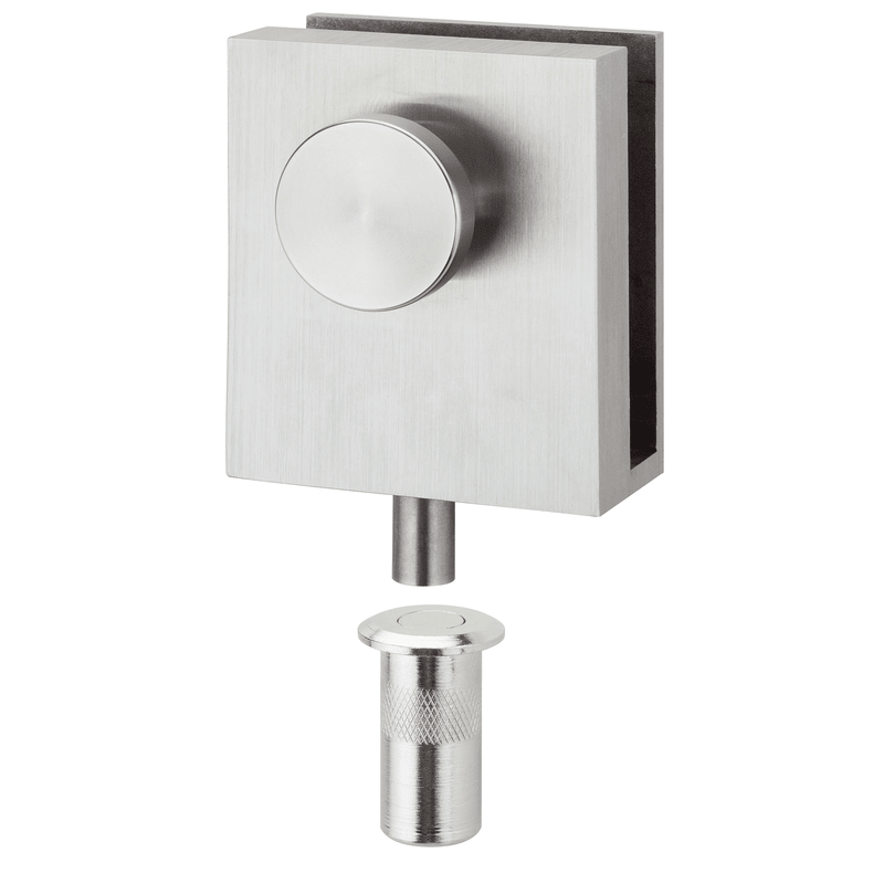 Glastür-Feststeller-Set, bestehend aus 1 Stück Glastürfeststeller, Aufnahmebuchse mit Federverschluss, Oberfl. 01 (Messing poliert)