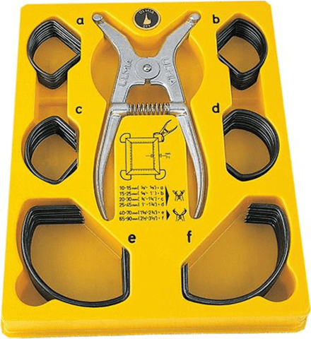 Inhalt: Je 8 Spannklammern Größe A, B, C, D, E, F und 1 Spreizzange.