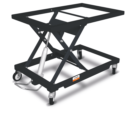 Anpassung des Tischs auf die gewünschte Arbeitshöhe durch Fußhydraulik