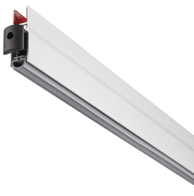 Universal Boden-Türdichtung für Ganzglastüren, Länge 1230 mm, Hub 14 mm, für Glas 8 - 13,5 mm, Universal Dichtprofil "B", 38 dB Rw, Tür 28 mm unten kürzen, kürzbar um 150 mm, Oberfl. F1 (silberfarben