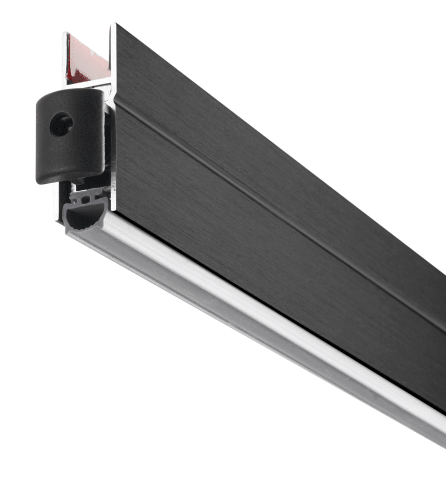 Universal Boden-Türdichtung für Ganzglastüren, Länge 1530 mm, Hub 14 mm, für Glas 8 - 13,5 mm, Universal Dichtprofil "B", 38 dB Rw, Tür 28 mm unten kürzen, kürzbar um 150 mm, Oberfl. 74 (Classic Black