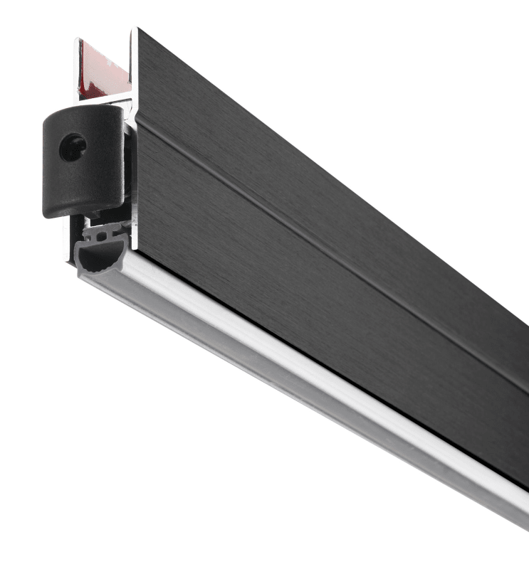 Universal Boden-Türdichtung für Ganzglastüren, Länge 930 mm, Hub 14 mm, für Glas 8 - 13,5 mm, Universal Dichtprofil "B", 38 dB Rw, Tür 28 mm unten kürzen, kürzbar um 150 mm, Oberfl. 74 (Classic Black,
