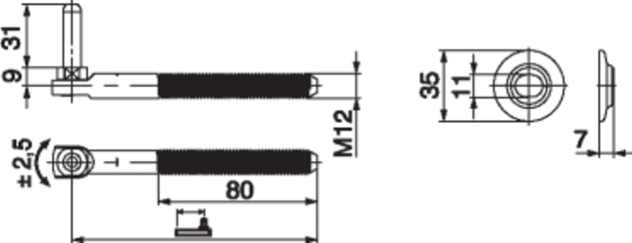 Maco Kreuzband MMV seitliche Regulierung ohne Anschraublasche mit Kröpfung 19 AT=37-45 schwarz-S 100008