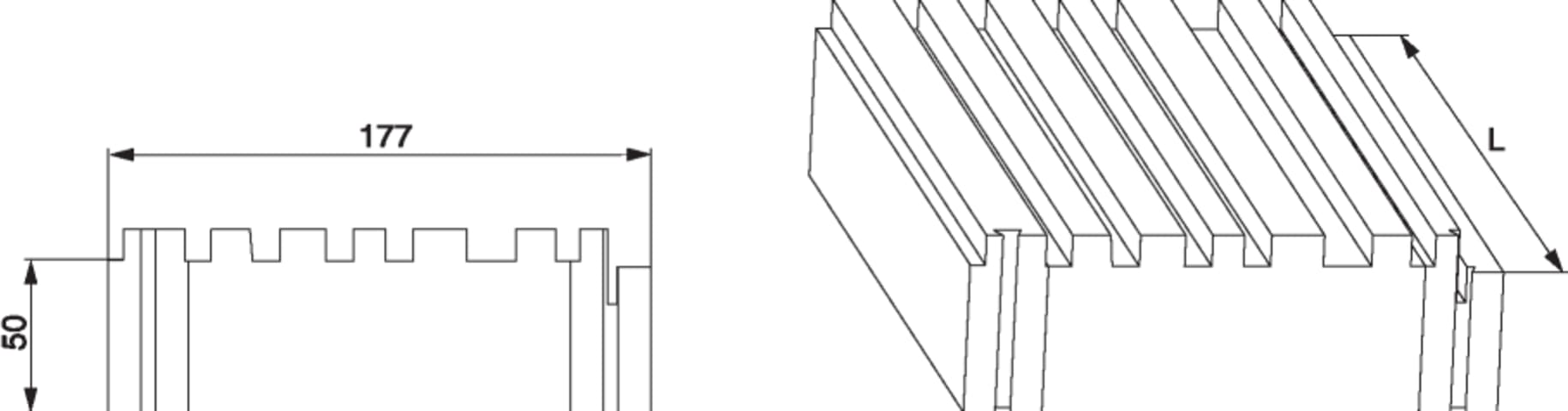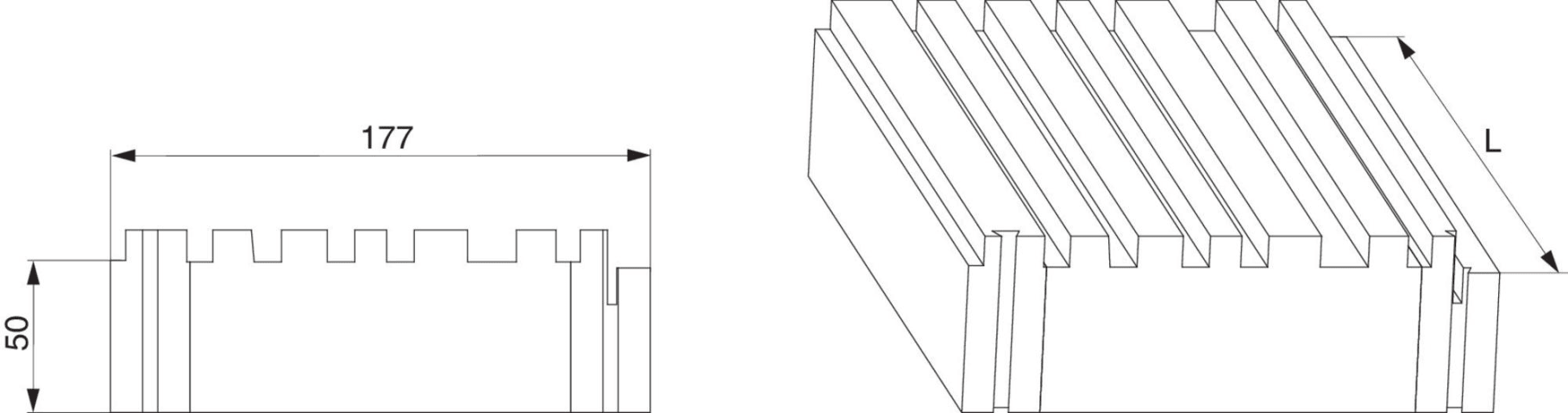 Unterbauprofil HS-ST in PUR für Grundkörper 180 CH B=177mm H=50mm L=3.588mm blank