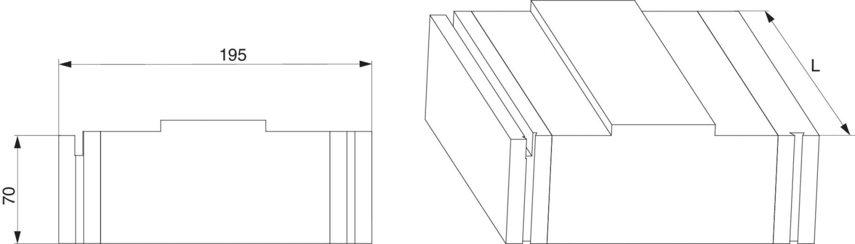 Unterbauprofil HS-ST in PUR für Grundkörper 240 B=195mm H=70mm L=3.588mm blank