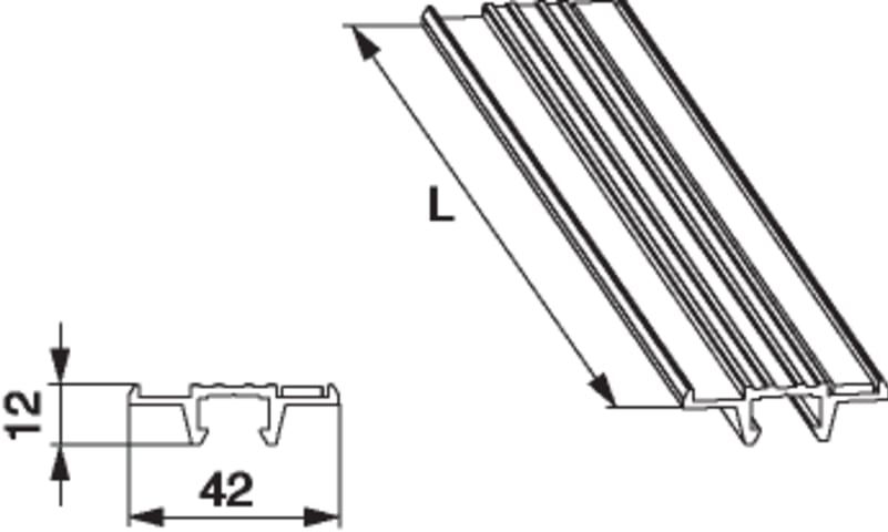 Führungs- und Bodenschiene HS in Alu "C" mit Dichtband B=42mm H=4mm L=3.500mm silber F1