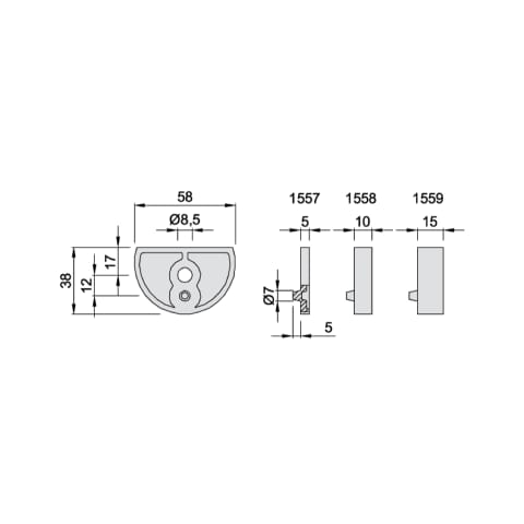 KWS, Objekttür-Unterlage, Ausführung: für Türpuffer, Modellnummer: 1558, Material: Aluminium, Farbton: silberfarbig, Oberfläche: eloxiert, Länge: 38 mm, Breite: 58 mm, Höhe: 10 mm, Befestigungstechnik