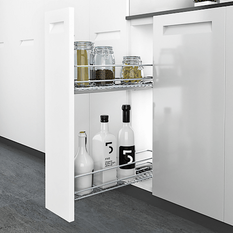 • Frontauszug 2-etagig für Unterschränke• Für Schrankbreite 150 mm und 200 mm• Metallkörbe• Passend für Quadro V6 Vollauszug, Nennlänge 470 mm (bitte separat bestellen)• Inklusive 3-dimensional v