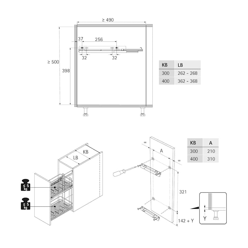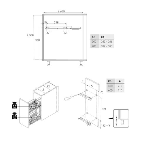 • Frontauszug 2-etagig für Unterschränke• Für Schrankbreite 300 mm und 400 mm• Metallkörbe• Passend für Quadro V6 Vollauszug, Nennlänge 470 mm (bitte separat bestellen)• Inklusive 3-dimensional v