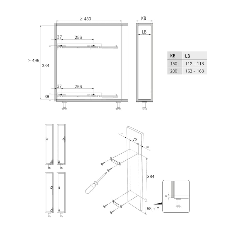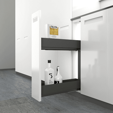 • Frontauszug 2-etagig für Unterschränke• Für Schrankbreite 150 mm und 200 mm• Stahltablare mit Antirutschmatte• Passend für Quadro V6 Vollauszug, Nennlänge 470 mm (bitte separat bestellen)• Inkl