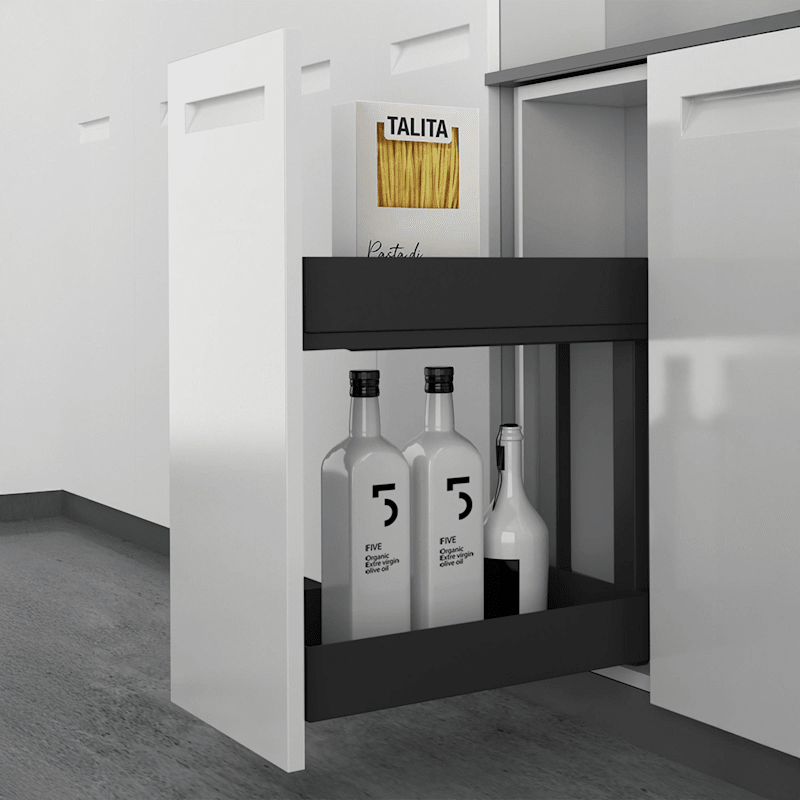 • Frontauszug 2-etagig für Unterschränke• Für Schrankbreite 300 mm und 400 mm• Stahltablare mit Antirutschmatte• Passend für Quadro V6 Vollauszug, Nennlänge 470 mm (bitte separat bestellen)• Inkl