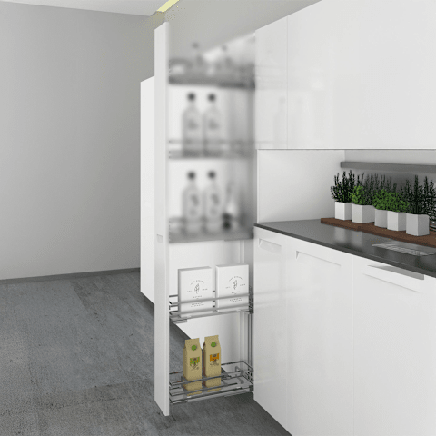 Hettich Frontauszug Lario 400, Korpusbreite 200, 2-etagig, verchromt / weiß