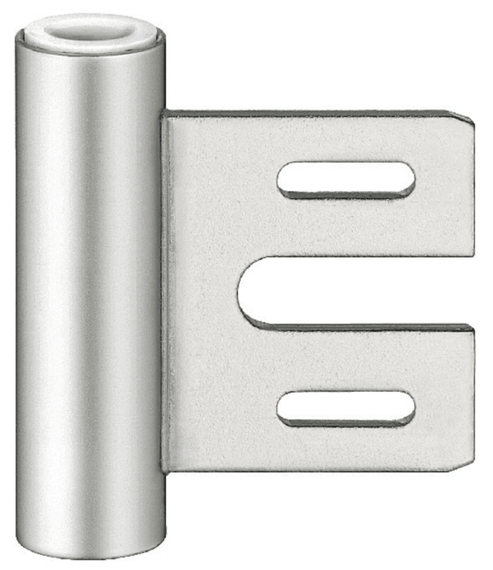 Variant Rahmenteil für 3-teilige Bänder an gefälzten und ungefälzten Türen an Stahlzargen mit verlängertem Lappen. Mit wartungsfreier Gleitlagertechnik. Nur mit Aufnahmeelement einsetzbar.