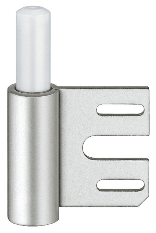 Variant Rahmenteil für 2-teilige Bänder an gefälzten und ungefälzten Türen an Stahlzargen. Mit wartungsfreier Gleitlagertechnik. Nur mit Aufnahmeelement einsetzbar.