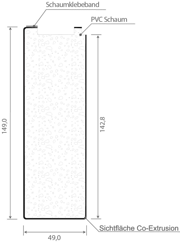 Veka-Bodeneinstand 150 mm SK Lg. 6,50 m Weiß, 149x49 mm PVC Schaum für 70er & 76er & 82er Nutzhöhe: ca. 142,8 mm