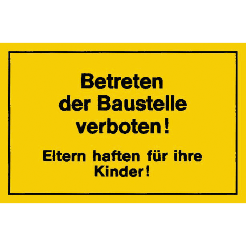Verbotsschild "Betreten der Baustelle verboten! Eltern haften für Ihre Kinder!" • 450 x 250 mm • Gelb-Schwarz