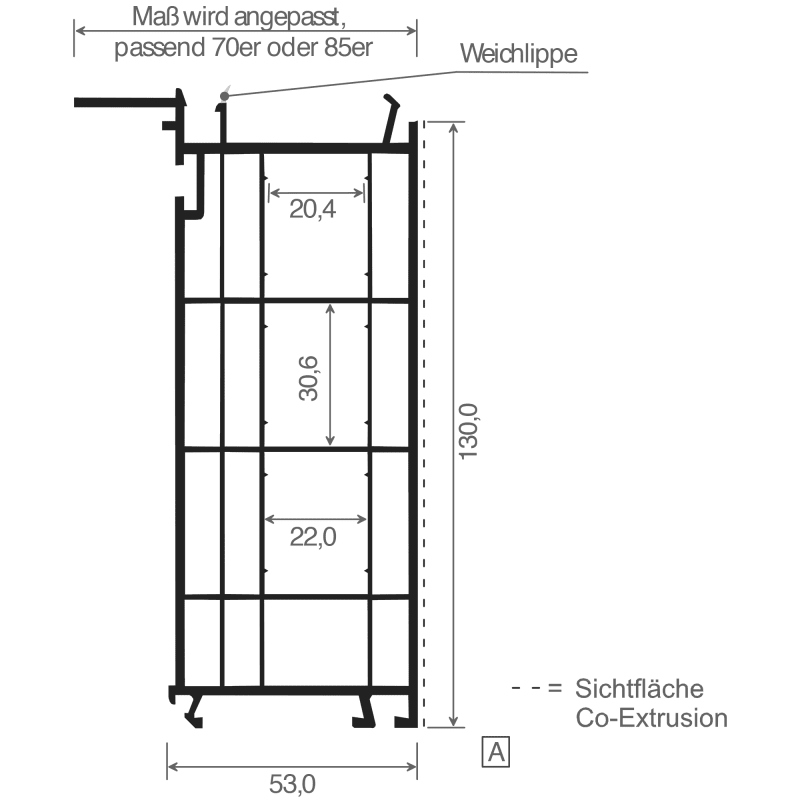 Aluplast-Bodeneinstand 130 mm Lg. 6,00 m Weiß, mit WL für 4000er/5000er, VE: 12 m