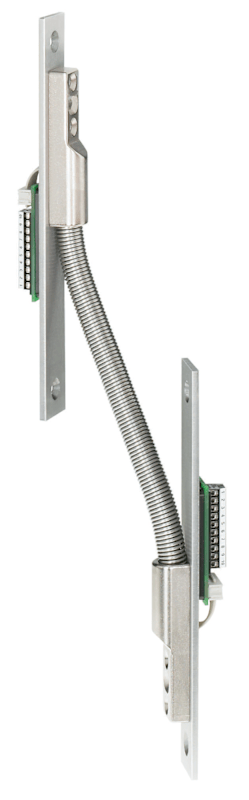 Zur unmittelbaren Stromübertragung vom Türrahmen zum Türblatt. Nicht rostender, flexiber Metallschlauch. Befestigungskappen zur Montage an Türrahmen und Türblatt.