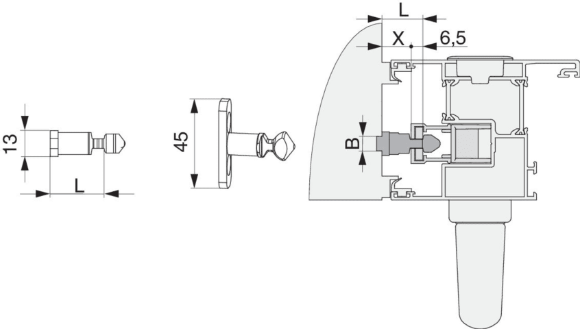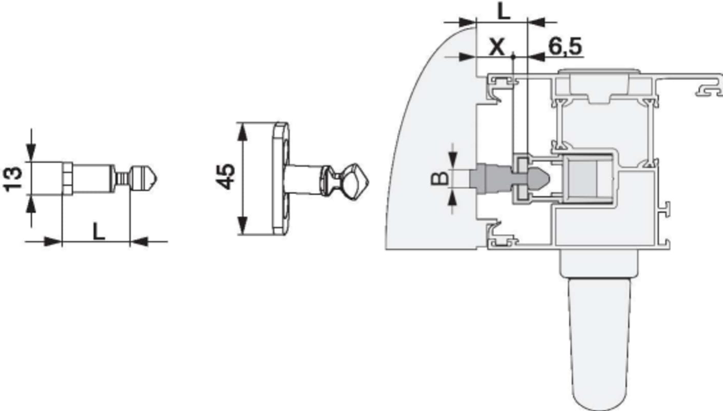 Verriegelungsbolzen HS PVC/Alu Breite=13 Höhe=27 gesamt Höhe=37,5 silber