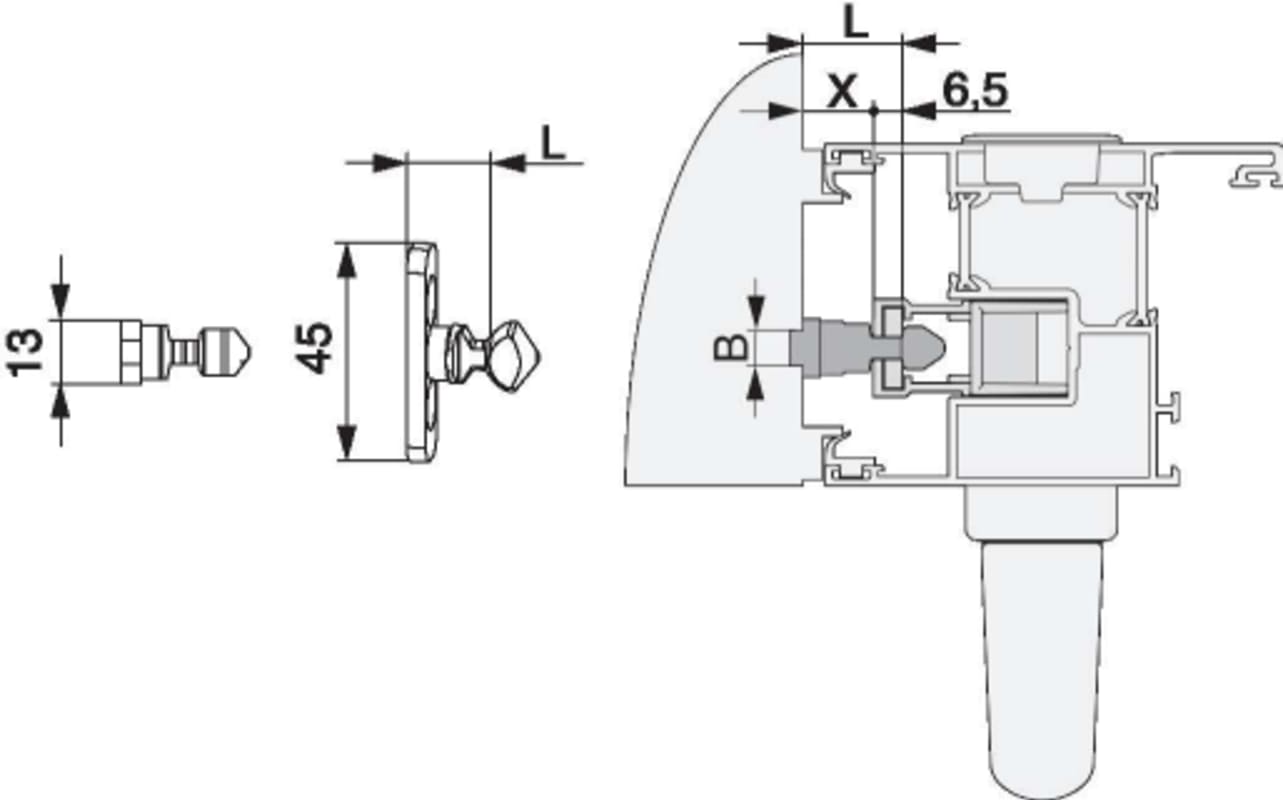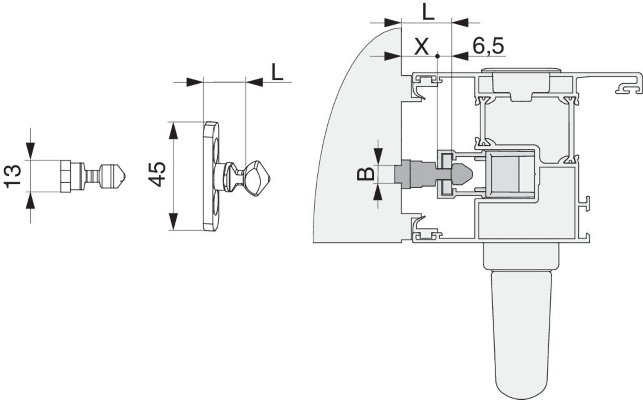 Verriegelungsbolzen HS PVC/Alu Breite=13 Höhe=16 gesamt Höhe=26,5 silber