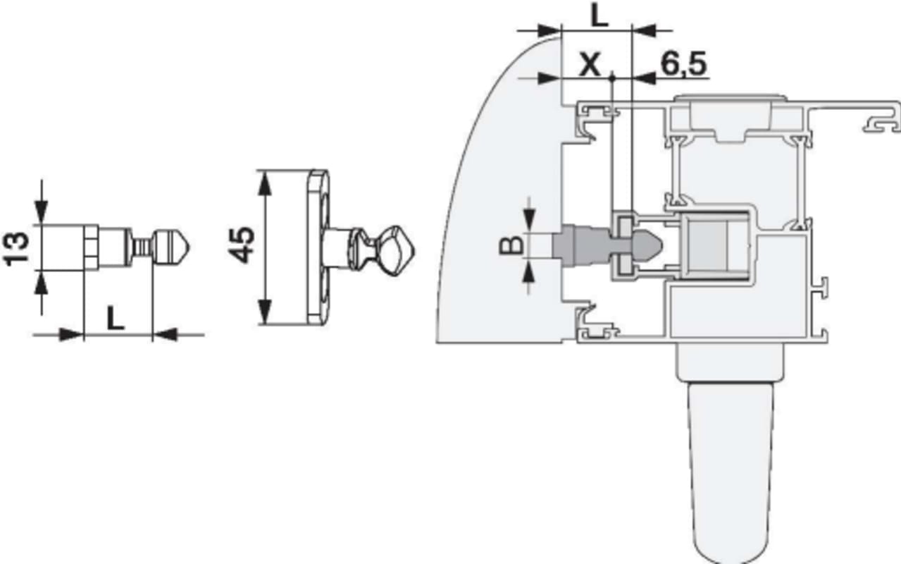 Verriegelungsbolzen HS PVC/Alu Breite=13 Höhe=20 gesamt Höhe=30,5 silber