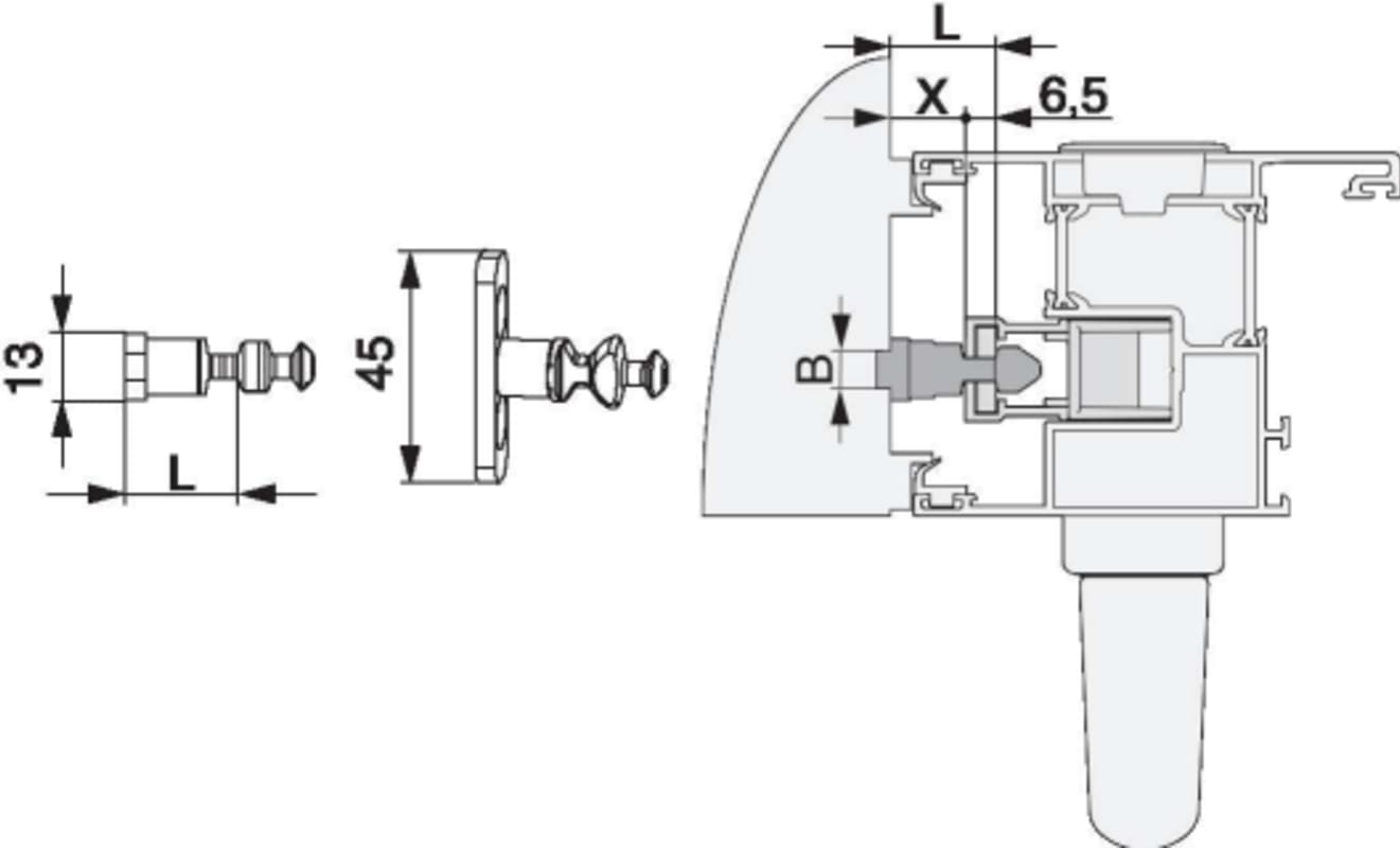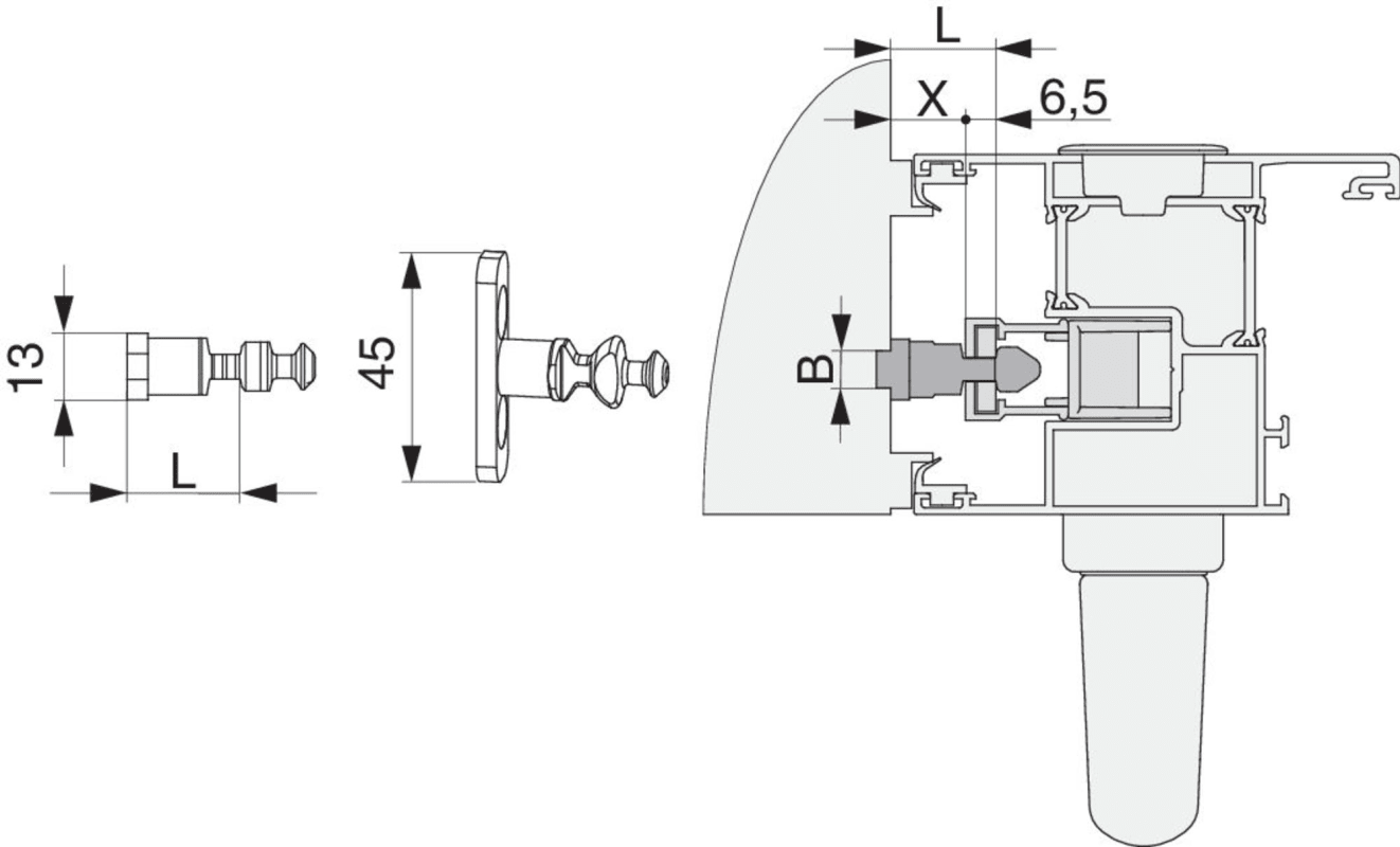 Verriegelungsbolzen HS PVC/Alu mit Spaltlüftung Breite=13 Höhe=22 gesamt Höhe=36,5 silber