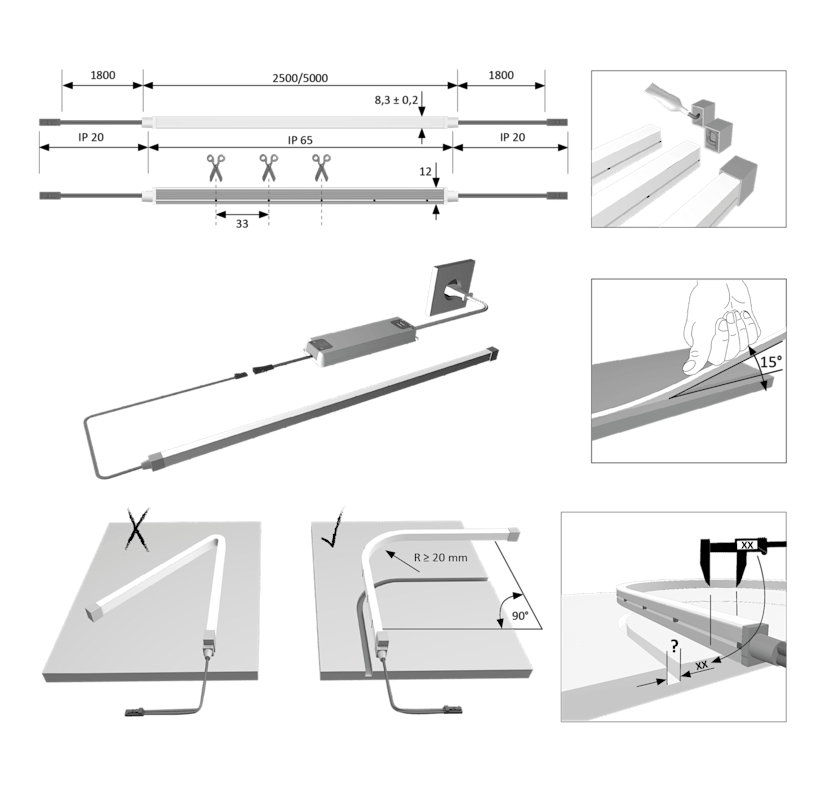 Individuell kürzbar alle 33 mm