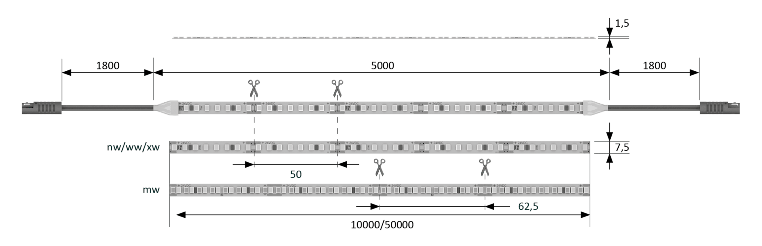 Halemeier LED-Anbauleuchte Versa Inside 1200; Spannung: 24 Volt DC; Schutzart: IP 20; Einsatzbereich: Möbel; Breite: 7,5 mm; Länge: 50.000 mm; Höhe: 1,5 mm; Lichtfarbe: multiweiß; Basis: LED-Anbauleuc