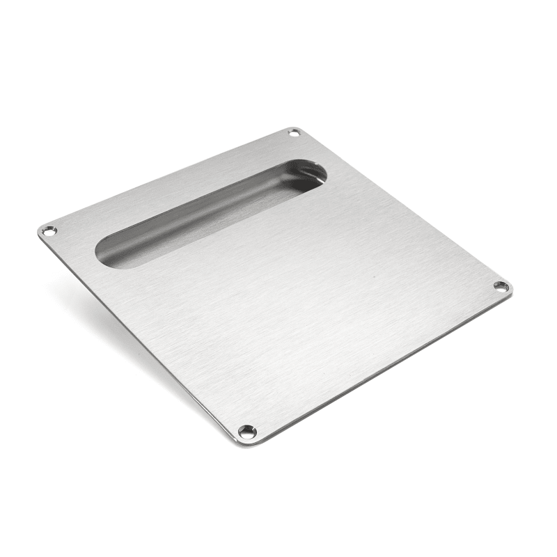 Knud Holscher Kollektion, bündiger Zuggriff, quadratisch, auf Rückenplatte, 175x175mm. Hergestellt aus hochwertigem, rostfreiem Edelstahl AISI 316, der vor starker Korrosion schützt. Zertifiziert in Ü