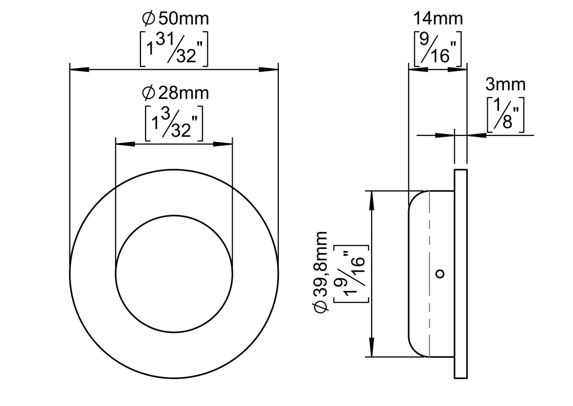 VERSENKTER ZIEHGRIFF RUND Ø50 ED RAL9005 SCHWARZ (143900R1051)