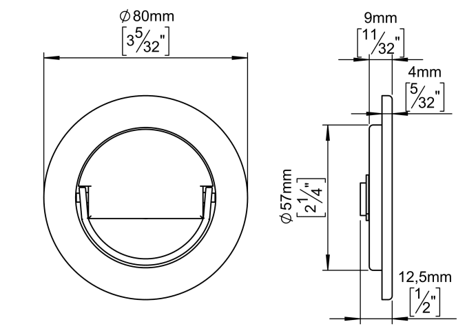 VERSENKTER ZIEHGRIFF RUND Ø80 CC38 8X8 DRÜCKERSTIFT (14391002001)