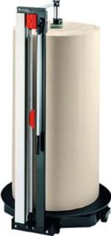 Schneidständer, fahrbar • Stahlrohr-Gestell • Für 2 Rollendurchmesser • Das Schneiden in waagerechter oder senkrechter Richtung ist problemlos möglich • 2 Messerkassetten: 1 Kassette mit Rundmesser für Pappe/Papier, 1 Kassette mit Klinge für Folien • Austrittshöhe des zu schneidenden Werkstoffs: 890/1215 mm • Vertikal-Schneidständer: mit ergonomischem Hebelarm Hinweis: Zum Schneiden von Rollen-Materialien wie Papier, Folie oder Wellpappe. Sowohl allein als auch in Kombination mit dem Packtisch-System nutzbar.