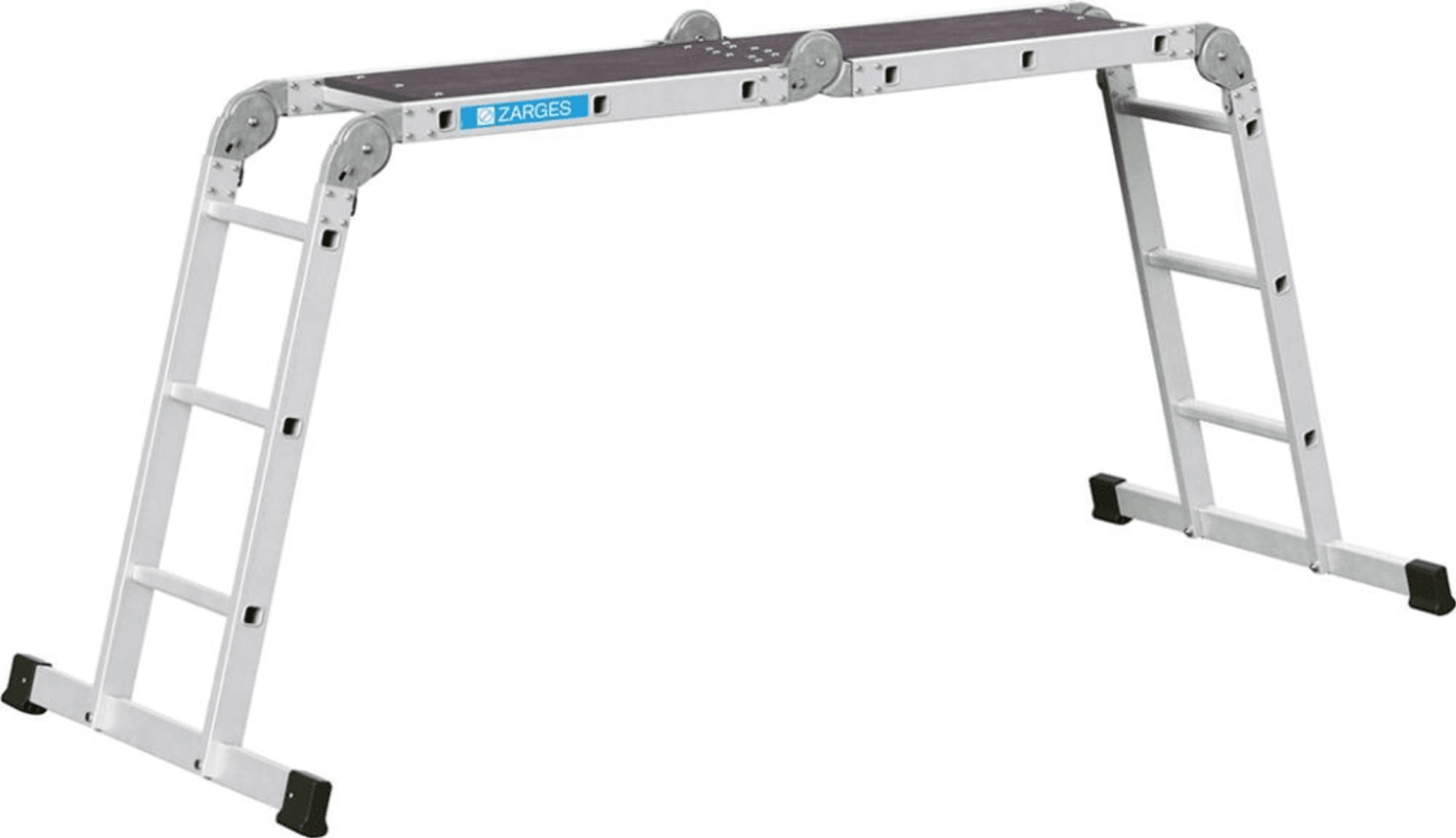 -Einsetzbar als Anlegeleiter, als beidseitig begehbare Stehleiter oder als praktisches Arbeitspodest.