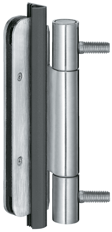 für gefälzte Schallschutztüren|mit Aufnahmenut für durchgehende Flügeldichtung|für Futter- und Stahlzargen|für Aufnahmeelement VARIANT VS und Blindeinnietmutter M10|innenliegender, verdrehsicherer Schraubstift|verdeckt liegende, wartungsfreie Axial-Radial-Gleitlager