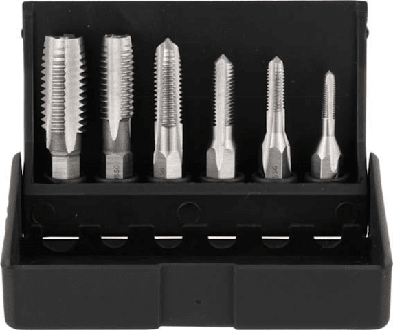 HexTap S-SatzLieferung: In Kunststoffbox.Inhalt:6 Gewindebohrer-Bits, M3; 4; 5; 6; 8; 10