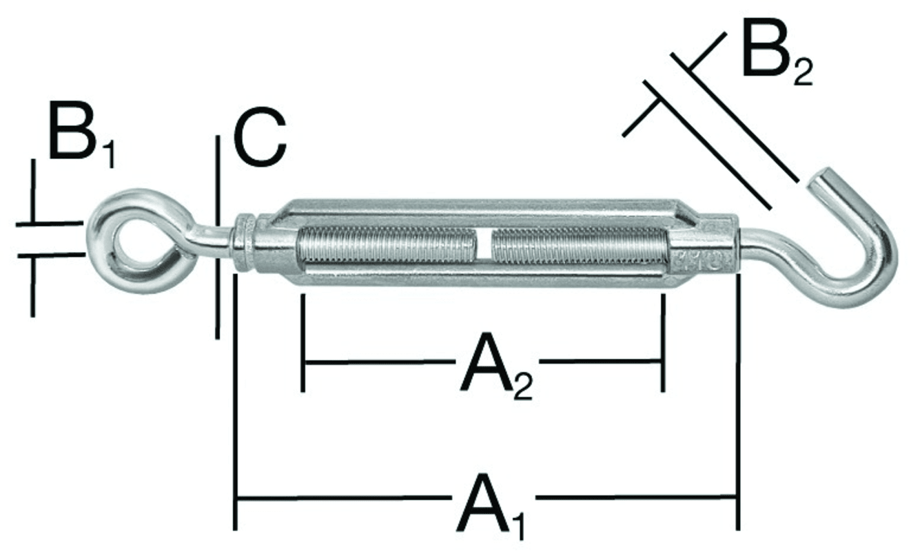 Spannschloss• Schloss aus verzinktem Stahl • Ausgestattet mit Haken und Öse • Verzinkt • SB-Karte a 2 Stück