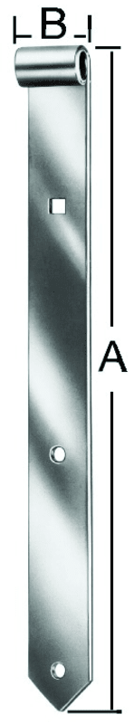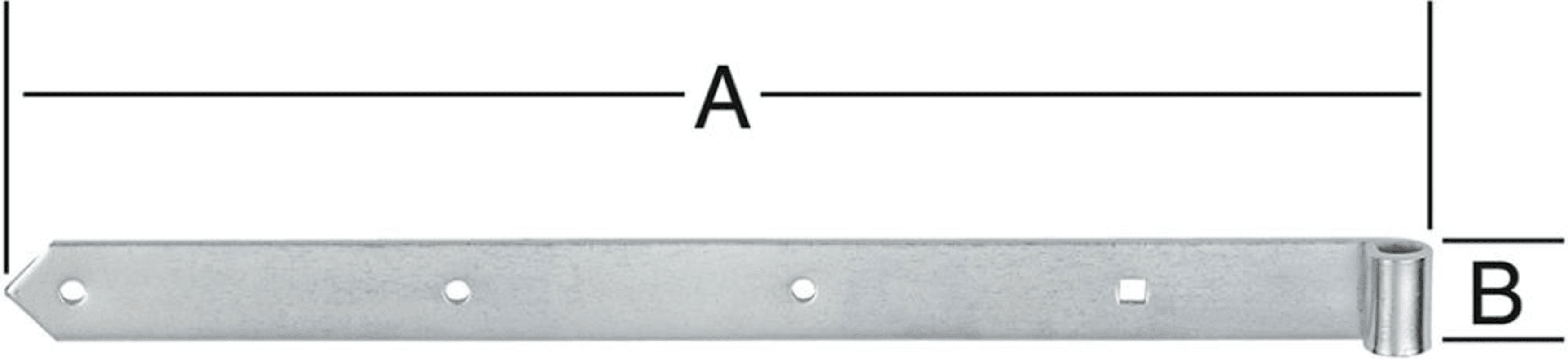VORMANN Ladenband; Ausführung: extraschwer; Material: Stahl; Oberfläche: verzinkt; für Dornstärke: 20mm; Basis: Ladenband; Form: spitz; Befestigungsart: zum Anschrauben; Einsatzbereich: Tor; Länge: 800mm; Breite: 60mm; Stärke: 20mm; Vierkantlochung: 9 x 9 mm; Anzahl Rundlöcher: 3St.; Rundlochdurchmesser: 8mm; Schraublochausführung: Rundkopf; Anzahl Vierkantlöcher: 1St.