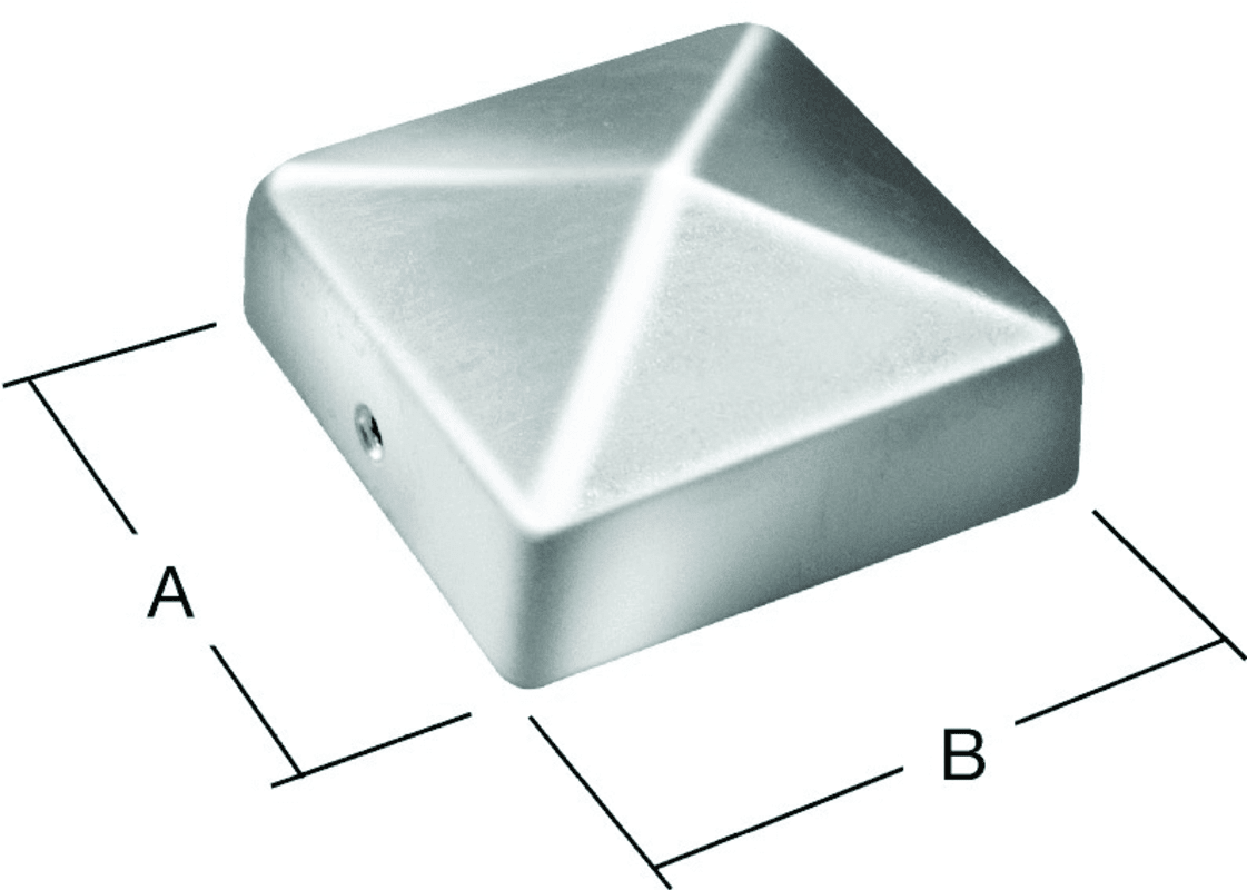 VORMANN Pfostenkappe; Basis: Pfostenkappe; Ausführung: ohne Kugel; Anwendungsbereich: Zaunpfosten; Material: Edelstahl; Oberfläche: blank; Breite: 91mm; Tiefe: 91mm; Anzahl Löcher: 2St.