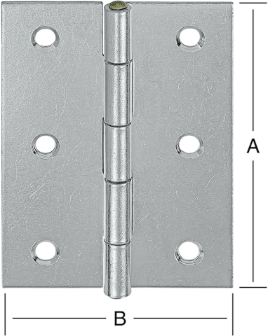 VORMANN Scharnier; Material: Stahl; Form: halbbreit; Oberfläche: verzinkt; Befestigungsart: zum Anschrauben; Einsatzbereich: Tür; Basis: Scharnier; Ausführung: gerollt; Lochdurchmesser: 3mm; Form Ecken: kantig; Norm: DIN 7954 B; Ergänzung: mit vernietetem Messingstift; Höhe: 50mm; Breite: 39mm; Stärke: 1,2mm; Anzahl Schraublöcher: 6St.; Schraublochausführung: Senkkopf; DIN-Richtung: DIN Links-Rechts