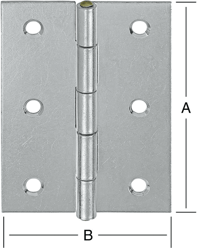 Scharnier, halbbreit DIN 7954 B• Gerollte Scharniere, blau verzinkt • Vernieteter Messingstift