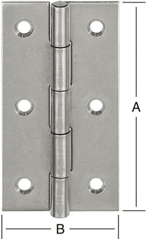 VORMANN Scharnier; Material: Edelstahl; Form: schmal; Oberfläche: rostfrei; Befestigungsart: zum Anschrauben; Einsatzbereich: Tür; Basis: Scharnier; Ausführung: gerollt; Lochdurchmesser: 3,5mm; Form Ecken: kantig; Ergänzung: mit vernietetem Edelstahlstift; Höhe: 80mm; Breite: 41mm; Stärke: 1,5mm; Farbton: edelstahl; Anzahl Schraublöcher: 6St.; Schraublochausführung: Senkkopf; DIN-Richtung: DIN Links-Rechts