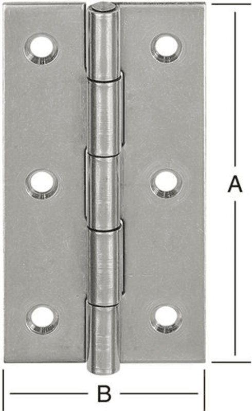 Scharnier, schmal DIN 7954 A• Aus Edelstahl, rostfrei • Schmal • Gerollt • Mit vernietetem Edelstahlstift • Eckenform kantig • Für Senkkopf-Schrauben • DIN-Richtung Links/Rechts