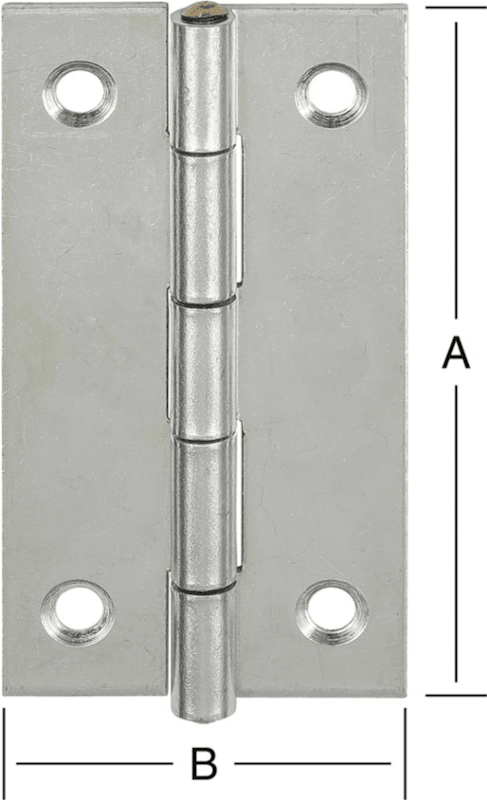 Scharnier, schmal DIN 7954 A• Stahl, verzinkt • Gerollt • Mit vernietetem Messingstift