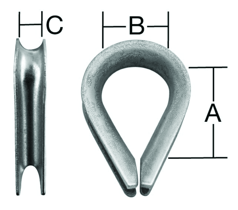 VORMANN Kausche; Basis: Kausche; Werkstoff: Edelstahl; Oberfläche: blank; Rillenmaß außen: 2mm; für Drahtseil: 3mm; Breite innen: 9mm; Höhe innen: 16mm; Nenngröße: 2