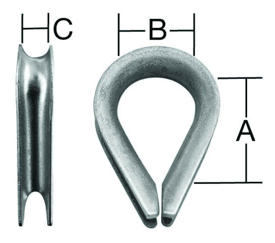 VORMANN Kausche; Basis: Kausche; Werkstoff: Edelstahl; Oberfläche: blank; Rillenmaß außen: 4mm; für Drahtseil: 4mm; Breite innen: 17,5mm; Höhe innen: 11mm; Nenngröße: 4