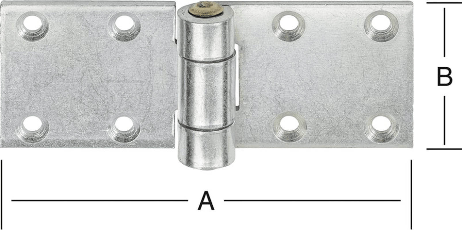 Starke breite Scharniere, verzinkt• Aus Stahl, verzinkt • Extra stark, breit, gerollt • Mit vernietetem Messingstift • Eckenform kantig • DIN-Richtung Links/Rechts • Schraublochausführung Senkkop