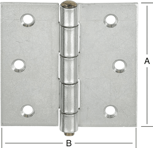 VORMANN Scharnier; Material: Stahl; Form: stark,kantig; Oberfläche: verzinkt; Befestigungsart: zum Anschrauben; Einsatzbereich: Tür; Basis: Scharnier; Ausführung: gerollt; Lochdurchmesser: 4mm; Form Ecken: kantig; Ergänzung: mit durchgedrücktem Gewerbe,mit losem Messingstift; Höhe: 63mm; Breite: 63mm; Stärke: 1,8mm; Anzahl Schraublöcher: 6St.; Schraublochausführung: Senkkopf; DIN-Richtung: DIN Links-Rechts