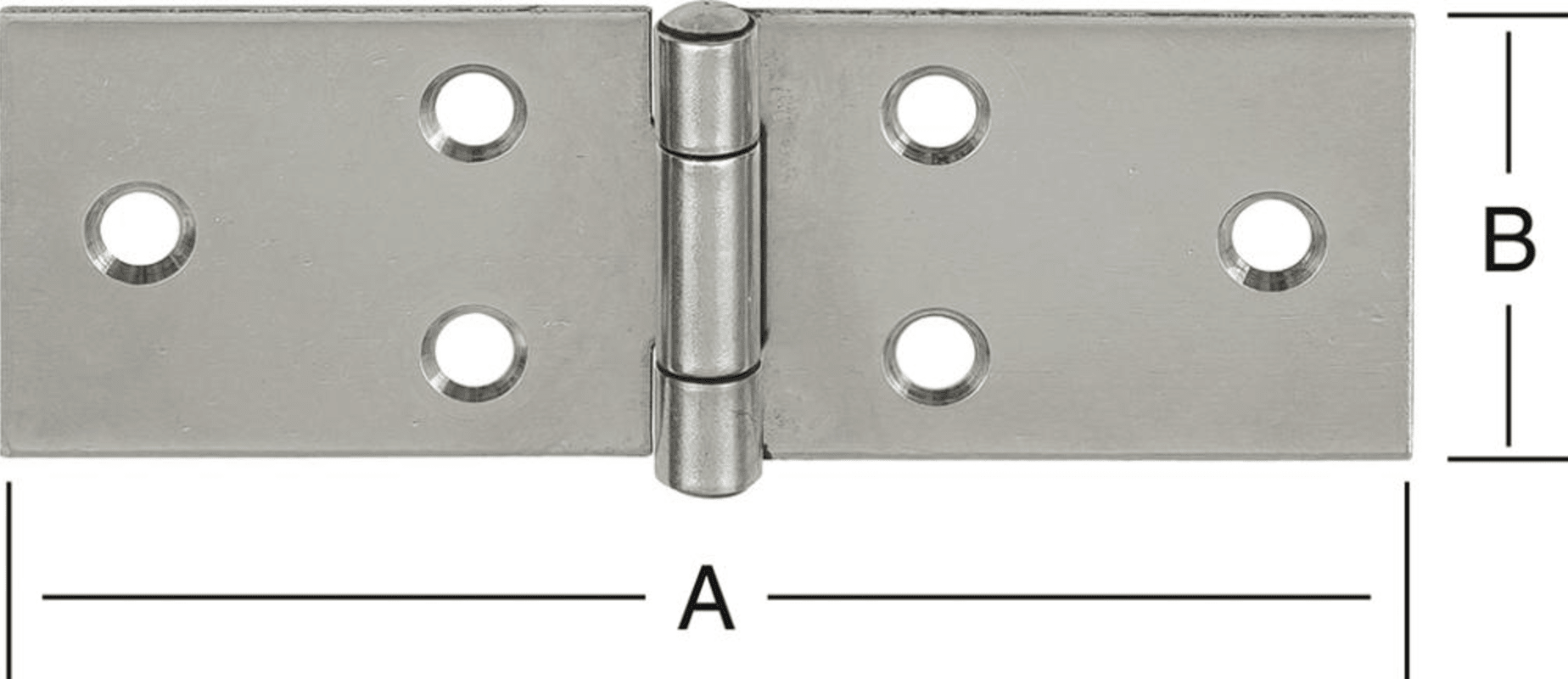 VORMANN Tischband; Ausführung: gerollt,breit,mit vernietetem Edelstahlstift; Werkstoff: Edelstahl; Befestigungsart: zum Aufschrauben; Einsatzbereich: Möbel; Breite: 33mm; Länge: 120mm; Basis: Tischband; Schraublochausführung: Senkkopf; DIN-Richtung: DIN Links-Rechts; Materialstärke: 1,2mm; Schraublochdurchmesser: 3,5mm; Anzahl Schraublöcher: 8St.
